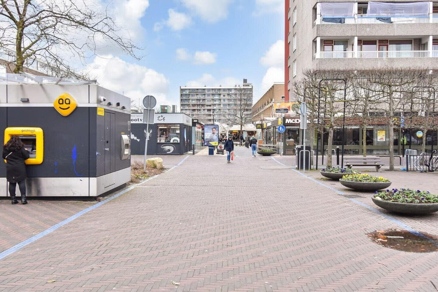 Parkeren kan op de eigen parkeerplaats in de parkeergarage, terwijl bezoekers in de omgeving of bij het winkelcentrum kunnen parkeren.